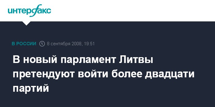 Вильнюс. 8 сентября. ИНТЕРФАКС - За мандаты членов сейма Литвы на предстоящих в оутябре выборах будут бороться представители 21 партии.