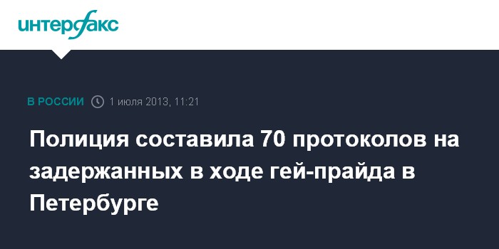 Санкт-Петербург. 1 июня. INTERFAX.RU - Задержанные в ходе акции в защиту прав сексуальных меньшинств в Санкт-Петербурге в субботу отпущены из отделений полиции, сообщили "Интерфаксу" в пресс-службе регионального ГУ МВД в понедельник.