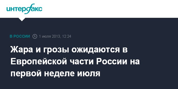 "Средняя суточная температура в течение недели превысит норму в большинстве областей Европейской территории России на четыре-шесть градусов (на севере в начале недели это превышение может достигать семь-девять градусов). Незначительный спад жары в средней полосе в начале недели вновь сменится постепенным повышением температурного фона. В понедельник под влиянием системы атмосферных фронтов в Центральном федеральном округе (ЦФО) пройдут дожди, местами сильные, ливни с грозами, порывистым ветром до 23 метров в секунду, местами возможен град", - говорится в сообщении Гидрометцентра, распространенном в понедельник.