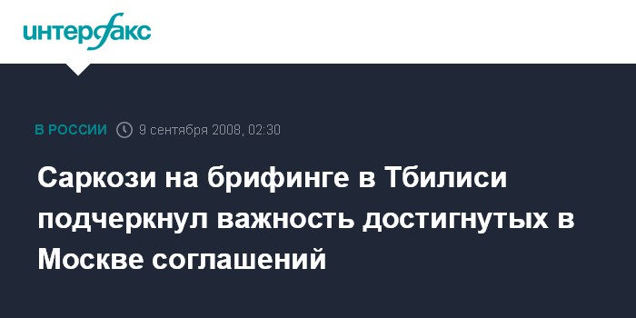 Тбилиси. 9 сентября. ИНТЕРФАКС - Президент Франции Николя Саркози в Тбилиси на совместном брифинге с президентом Грузии Михаилом Саакашвили подчеркнул важность соглашений, достигнутых в Москве.