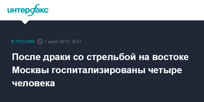 Москва. 1 июля. INTERFAX.RU - Четыре человека попали в больницы после драки с применением травматического оружия на востоке столицы, сообщили "Интерфаксу" в пресс-службе ГУ МВД России по Москве.