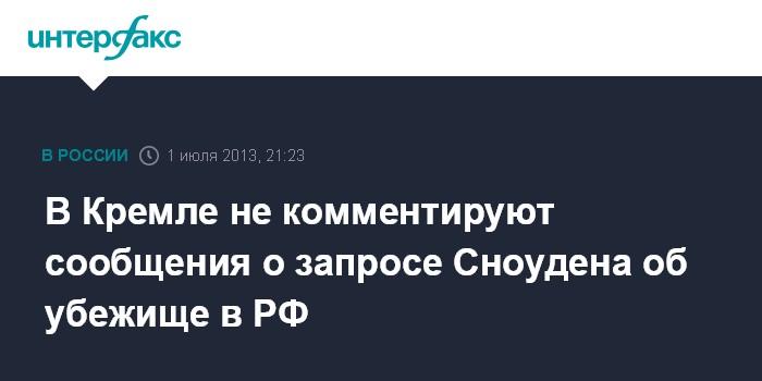 Москва. 1 июля. INTERFAX.RU - Пресс-секретарь президента Дмитрий Песков воздержался от комментариев в связи с появившимися сообщениями о том, что бывший сотрудник ЦРУ Эдвард Сноуден подал запрос о предоставлении ему убежища в России.