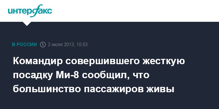 Москва. 2 июля. NTERFAX.RU - При жесткой посадке вертолета Ми-8 в Якутии, по предварительным данным, выжило большинство пассажиров, сообщил "Интерфаксу" источник в оперативном штабе спасательной операции.