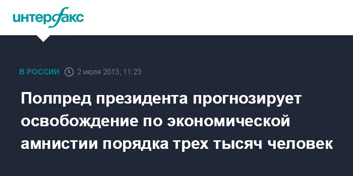 Полпред президента прогнозирует освобождение по экономической амнистии порядка трех тысяч человек