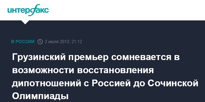 Тбилиси. 2 июля. INTERFAX.RU - Премьер-министр Грузии Бидзина Иванишвили считает, что восстановить дипломатические отношения с Россией до Зимней Олимпиады 2014 г. в Сочи не получится, так как для этого "необходимы и время, и соответствующая обстановка".