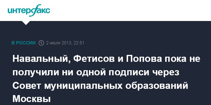 Навальный, Фетисов и Попова пока не получили ни одной подписи через Совет муниципальных образований Москвы