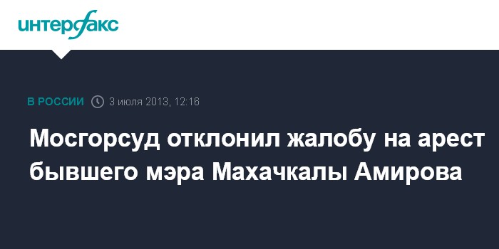 Решение Басманного суда, заключившего Амирова под стражу до 1 августа, вступило в законную силу. Согласно доводам жалобы, экс-мэр заключен под стражу незаконно, так как состояние здоровья не позволяет содержать его в условиях следственного изолятора.