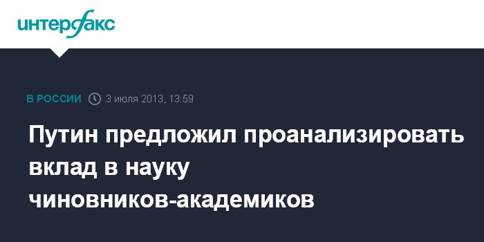 Москва. 3 июля. INTERFAX.RU - Президент РФ Владимир Путин считает необходимым проанализировать, какой вклад в науку вносят академики из числа высокопоставленных чиновников.