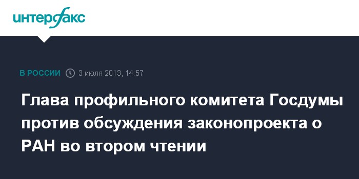 Глава профильного комитета Госдумы против обсуждения законопроекта о РАН во втором чтении