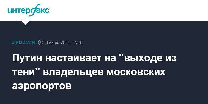 "Необходимо, чтобы все участники проектов находились в российской юрисдикции и с известными бенефициарами, это важно для того, чтобы четко понимать: кто, за чей счет и в каком объеме будет финансировать развитие аэропортовой инфраструктуры", - заявил Путин на совещании по развитию Московского авиаузла.