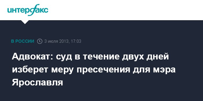 Адвокат: суд в течение двух дней изберет меру пресечения для мэра Ярославля