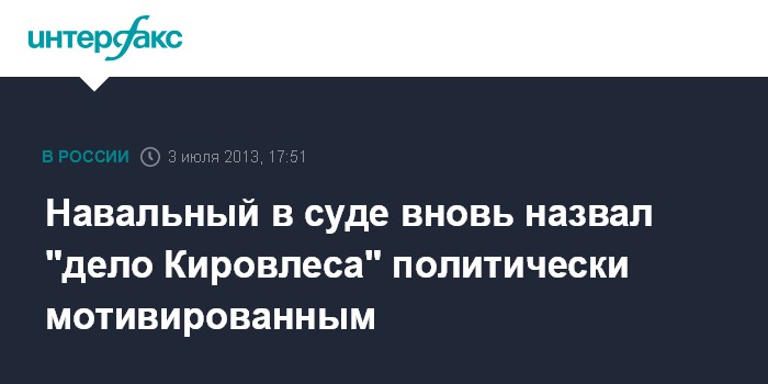 Навальный отметил, что расследование по "делу Кировлеса" прекращалось на стадии предварительного следствия, а затем снова возобновлялось. "Дело несколько раз закрывалось и открывалось на разных уровнях. Но по ходу того, как я публиковал новые факты (на тему коррупции - ИФ), вся моя деятельность подвергалась вниманию спецслужб. И в итоге они вновь вернулись к этому делу "Кировлеса", - сказал он.
