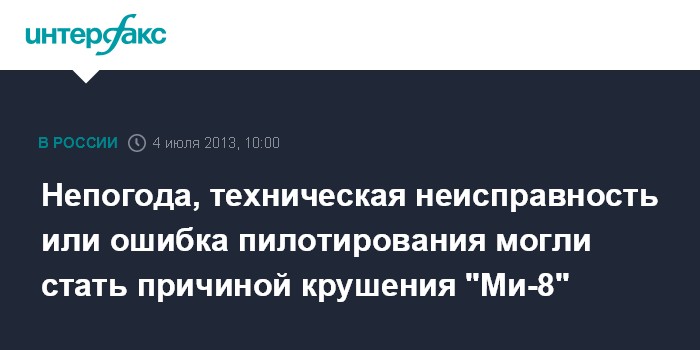 Непогода, техническая неисправность или ошибка пилотирования могли стать причиной крушения "Ми-8"