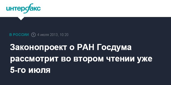 Москва. 4 июля. INTERFAX.RU - Госдума включила в повестку дня пятничного пленарного заседания рассмотрение во 2-м чтении законопроекта о реформировании РАН.