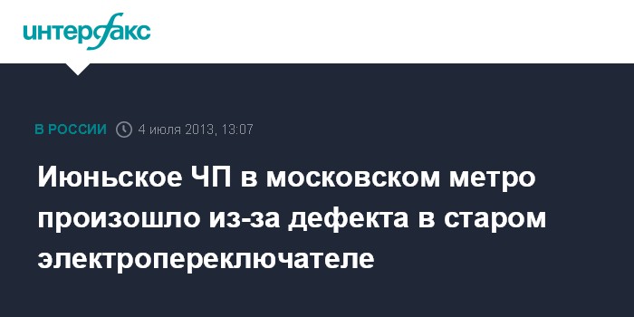 Июньское ЧП в московском метро произошло из-за дефекта в старом электропереключателе