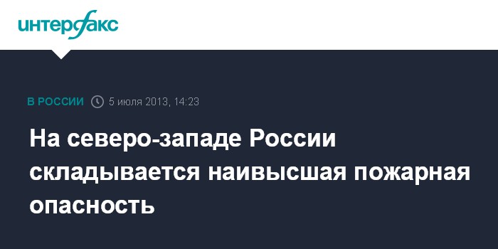 Москва. 5 июля. INTERFAX.RU - Из-за сильной жары на северо-западе России объявлен наивысший пятый класс пожарной опасности, заявил глава Гидрометцентра РФ Роман Вильфанд.