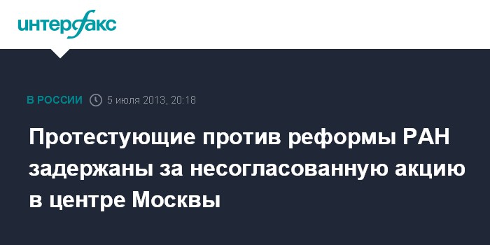 Протестующие против реформы РАН задержаны за несогласованную акцию в центре Москвы