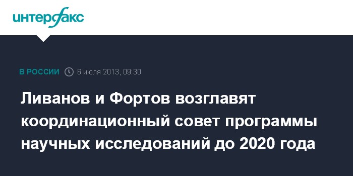 Ливанов и Фортов возглавят координационный совет программы научных исследований до 2020 года