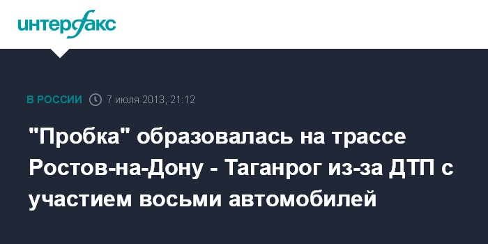 Чалтырь. 7 июля. ИНТЕРФАКС - На трассе в Ростовской области столкнулись восемь автомобилей, никто не пострадал.
