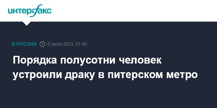 Москва. 8 июля. ИНТЕРФАКС - Массовая драка произошла в Петербурге на станции метро "Садовая" в воскресенье, сообщает пресс-служба ГУ МВД РФ по Санкт-Петербургу и Ленинградской области.