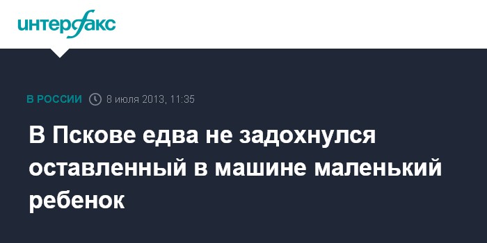 Псков. 8 июля. INTERFAX.RU - В Пскове полицейский спас ребенка, оставленного родителями без присмотра в автомашине, сообщает в понедельник ГИБДД УМВД России по городу Пскову.