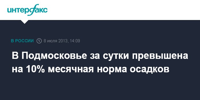 Собеседник агентства уточнил, что норма осадков для июля составляет 94 мм. Климатическая норма за 24 часа была превышена на 10%.