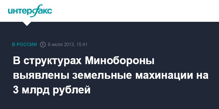 Москва. 8 июля. INTERFAX.RU - Военные прокуроры выявили в структурах Минобороны России земельные махинации на сумму почти в 3 млрд рублей.