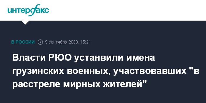 Власти РЮО устанвили имена грузинских военных, участвовавших "в расстреле мирных жителей"