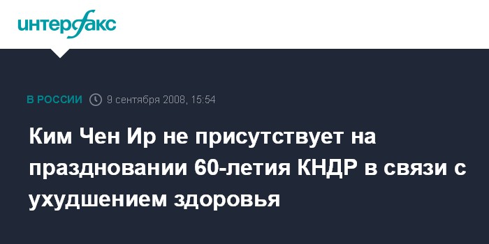 Сеул. 9 сентября. INTERFAX.RU - В Пхеньяне проходят торжества по случаю 60-летия КНДР, однако лидер страны Ким Чен Ир не присутствует на празднике, сообщают южнокорейские СМИ.