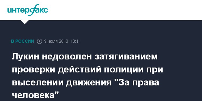 Москва. 9 июля. INTERFAX.RU - Уполномоченный по правам человека в РФ Владимир Лукин встревожен затянувшейся служебной проверкой действий полиции при выселении из офиса в Москве активистов движения "За права человека".