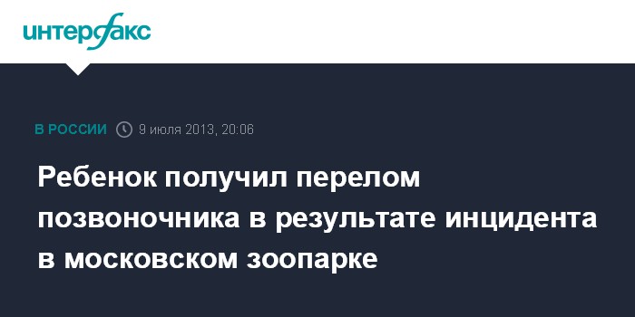Ребенок получил перелом позвоночника в результате инцидента в московском зоопарке
