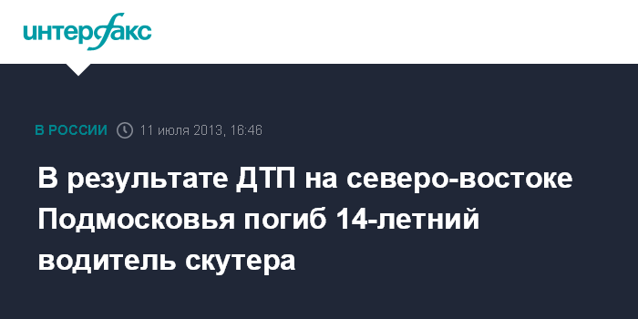 В результате ДТП на северо-востоке Подмосковья погиб 14-летний водитель скутера