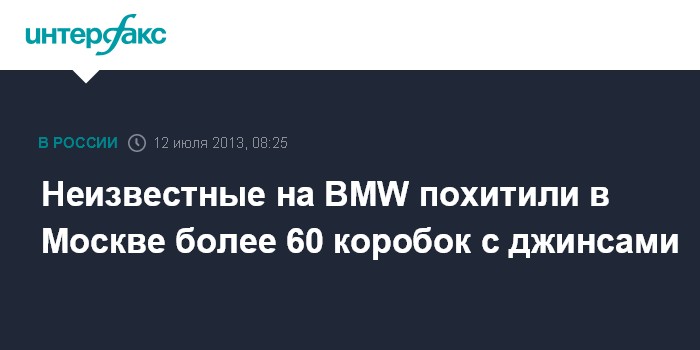 Неизвестные на BMW похитили в Москве более 60 коробок с джинсами
