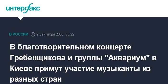 Кроме того, Б.Гребенщиков подчеркнул, что на концерт в Киеве планируется пригласить около 200 бизнесменов и предпринимателей Украины с тем, чтобы они приняли участие в благотворительной акции.