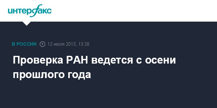 Москва. 12 июля. INTERFAX.RU - Счетная палата РФ планирует завершить проверку Российской академии наук (РАН) в сентябре этого года.