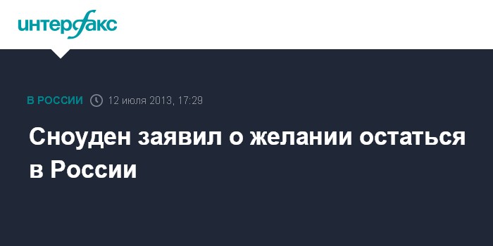 Москва. 12 июля. INTERFAX.RU - Экс-сотрудник ЦРУ Эдвард Сноуден в пятницу на встрече с правозащитниками в аэропорту "Шереметьево" сообщил, что хотел бы остаться в России.