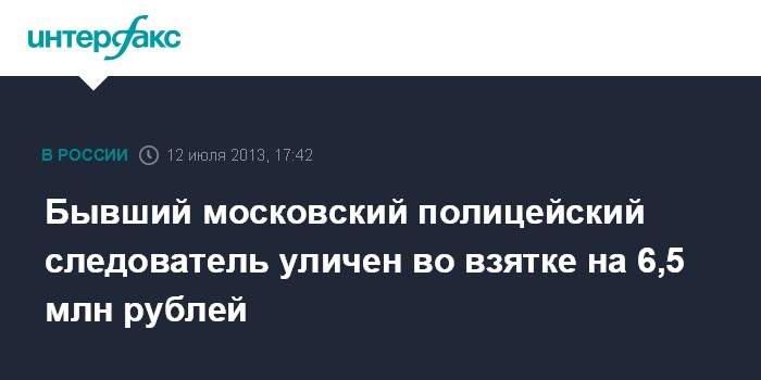 Бывший московский полицейский следователь уличен во взятке на 6,5 млн рублей
