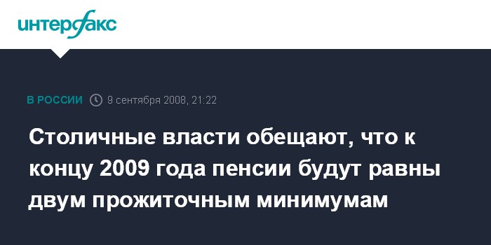 Столичные власти обещают, что к концу 2009 года пенсии будут равны двум прожиточным минимумам