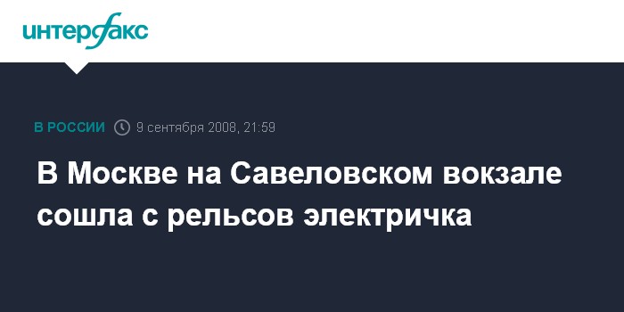 Москва. 9 сентября. ИНТЕРФАКС-МОСКВА - Один из вагонов электропоезда Москва-Икша, отправлявшегося во вторник вечером с Савеловского вокзала, сошел с рельсов.