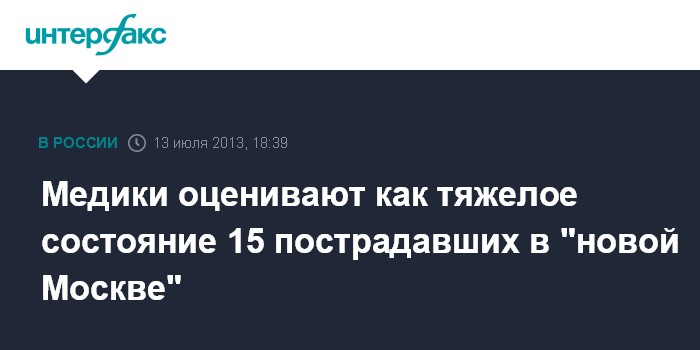 Медики оценивают как тяжелое состояние 15 пострадавших в "новой Москве"