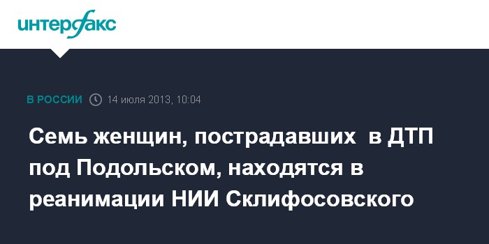 Семь женщин, пострадавших в ДТП под Подольском, находятся в реанимации НИИ Склифосовского