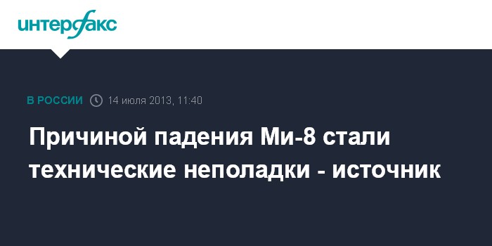 Москва. 14 июля. INTERFAX.RU - Вертолет Ми-8 упал в Томской области из-за отказа техники, сообщил "Интерфаксу" источник в службах технадзора региона. "Вертолет после взлета из-за отказа техники получил крен на один из бортов и задел винтами землю", - отметил источник.