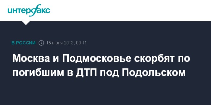 Москва. 15 июля. ИНТЕРФАКС - Траур по погибшим в результате трагического субботнего ДТП под Подольском, жертвами которого стали 18 человек, объявлен в понедельник в Москве и Московской области.