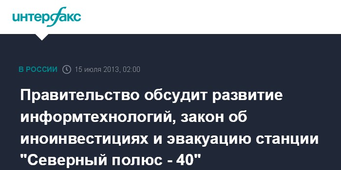 Правительство обсудит развитие информтехнологий, закон об иноинвестициях и эвакуацию станции "Северный полюс - 40"