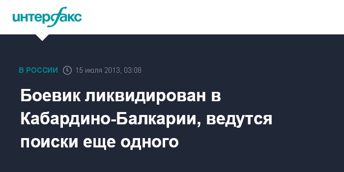 Москва. 15 июля. ИНТЕРФАКС - Предполагаемый участник незаконных вооруженных формирований (НВФ) ликвидирован в Кабардино-Балкарии, сообщили "Интерфаксу" в пресс-центре МВД России.