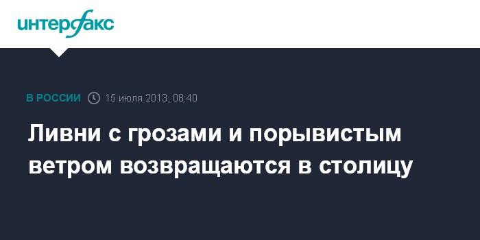 В метеобюро добавили, что в Москву возвращаются ливни с грозами и порывистым ветром, скорость которого может достигать 12-17 метров в секунду.