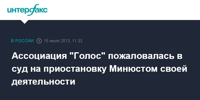 26 июня московский главк Минюста принял решение о приостановке деятельности правозащитной организации "Голос" в связи с отказом регистрироваться в качестве "иностранного агента".
