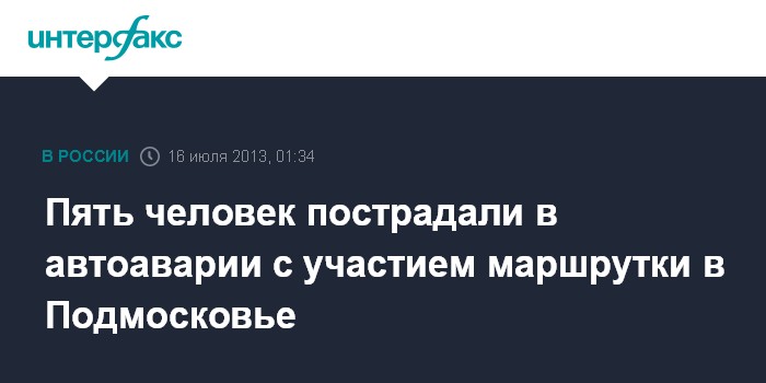 Москва. 16 июля. ИНТЕРФАКС - Пять человек пострадали в ДТП в Ногинском районе Подмосковья, где опрокинулось маршрутное такси, сообщили "Интерфаксу" в пресс-службе управления ГИБДД Московской области.