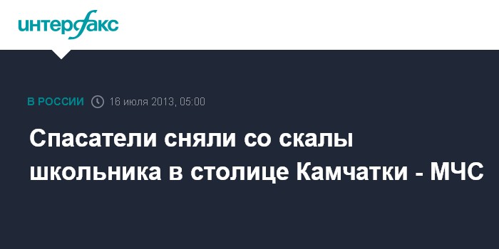 Петропавловск-Камчатский. 16 июля. ИНТЕРФАКС - ДАЛЬНИЙ ВОСТОК - Сотрудники поисково-спасательного отряда выручили из беды 11-летнего школьника, не сумевшего самостоятельно спуститься со скалы в центре Петропавловска-Камчатского.