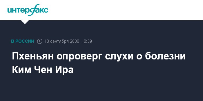 Москва. 10 сентября. INTERFAX.RU - Официальные лица КНДР в среду опровергли слухи о том, что северокорейский лидер Ким Чен Ир серьезно болен, сообщают зарубежные СМИ.